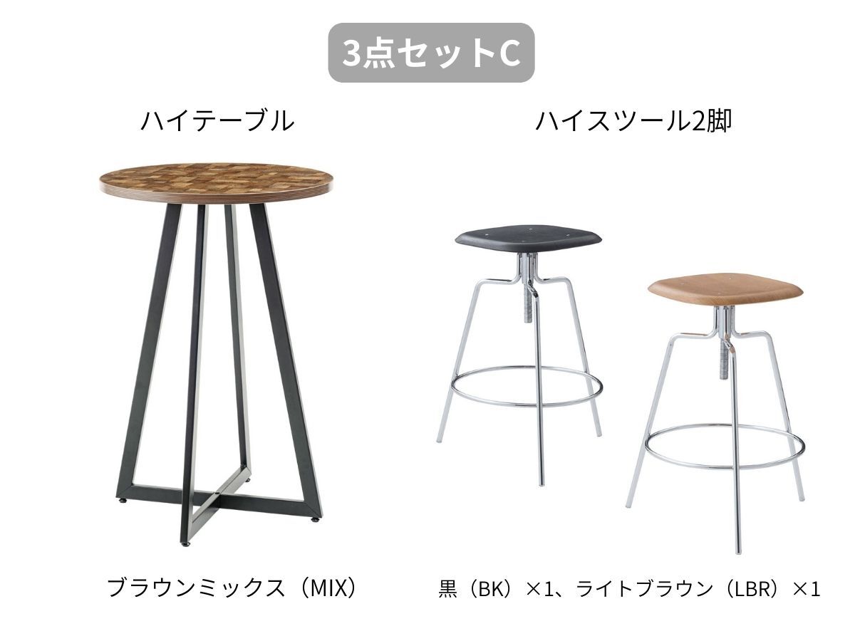 【3点Set】ハイテーブルセット(ブラウン)スツールカラー選択可能