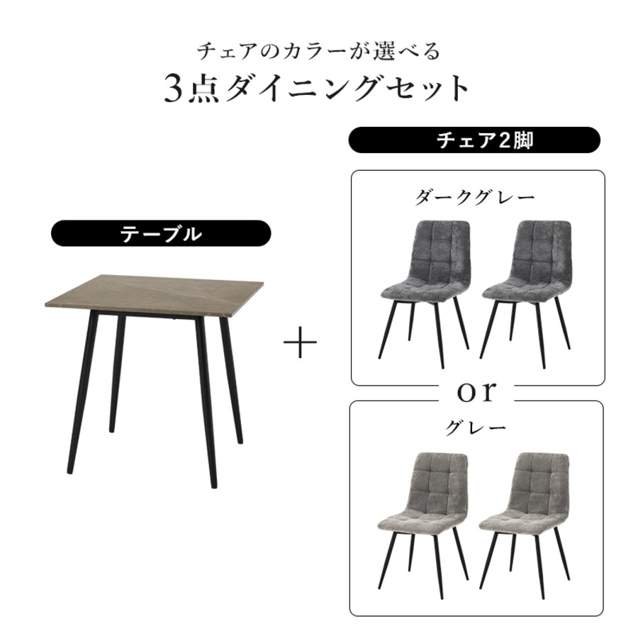 テーブルとチェア2脚(グレー)3点セットでお届けします。