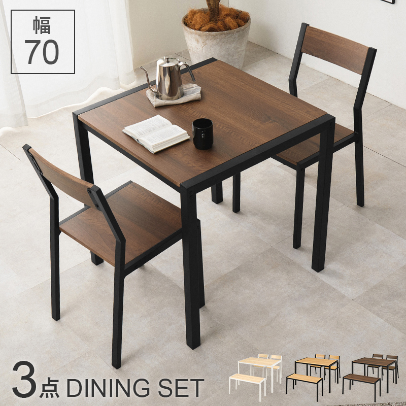 温かみのある木目調天板とアイアンフレームを組み合わせたダイニング3点セット。